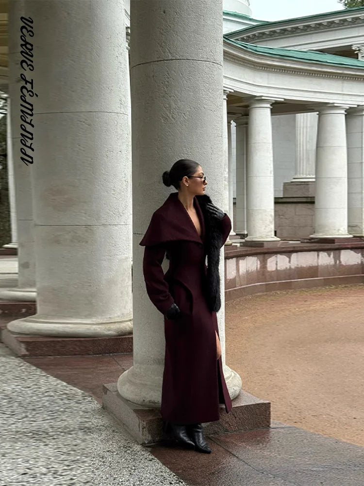 Large Shawl Solid Slim Woolen Overcoat Women Fashion Single Breasted Waist Cinching Hip Package Autumn Winter Coat New Outerwear