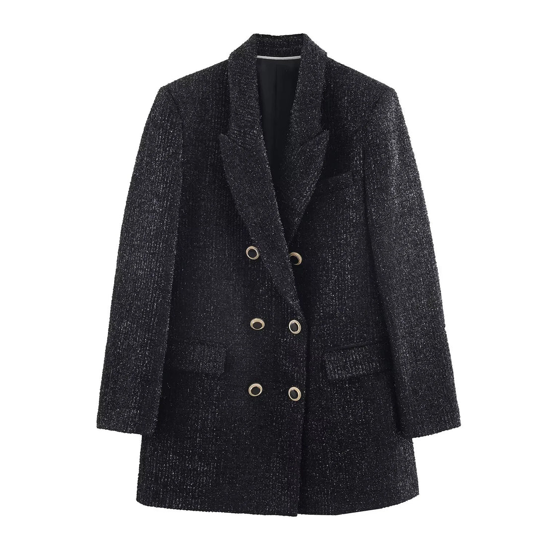 Winter new women's clothing small fragrance style black high-end temperament double breasted metal wire suit jacket