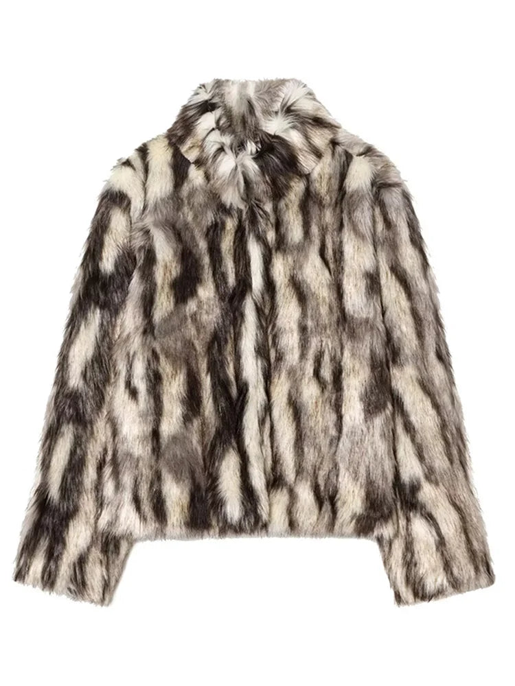 Vintage Panelled Loose Women's Faux Fur Coat Stand Collar Long Sleeve Autumn Winter Furry Warm Coats New Casual Ladies Outerwear