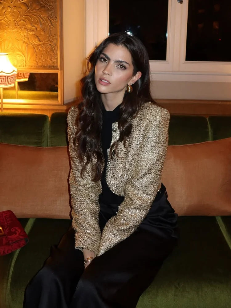Women's 2 Pcs Suits Velver Bow Slim Bomber Jacket Sequined Long Skirt Sets New Female V-neck Button Coats With High Waist Skirts