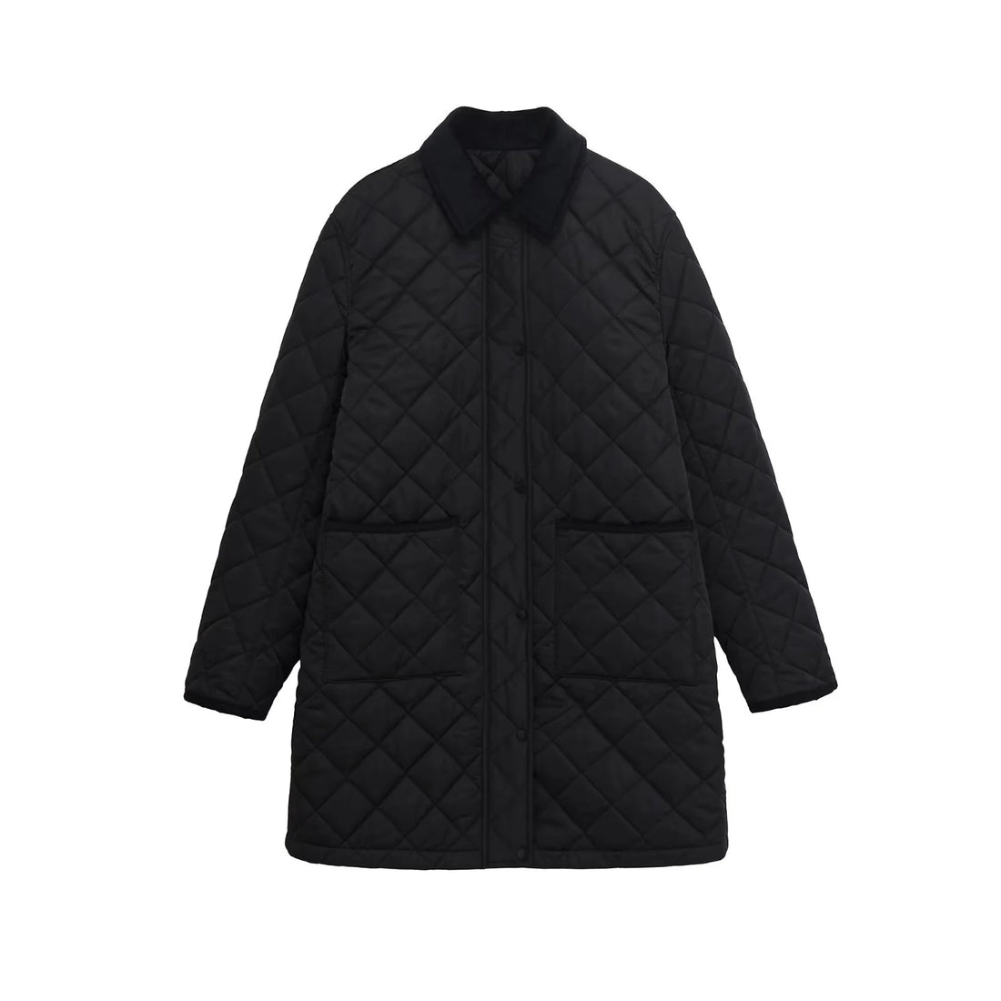 European and American style 2025 winter new women's clothing diamond patterned corduroy collar long coat cotton jacket