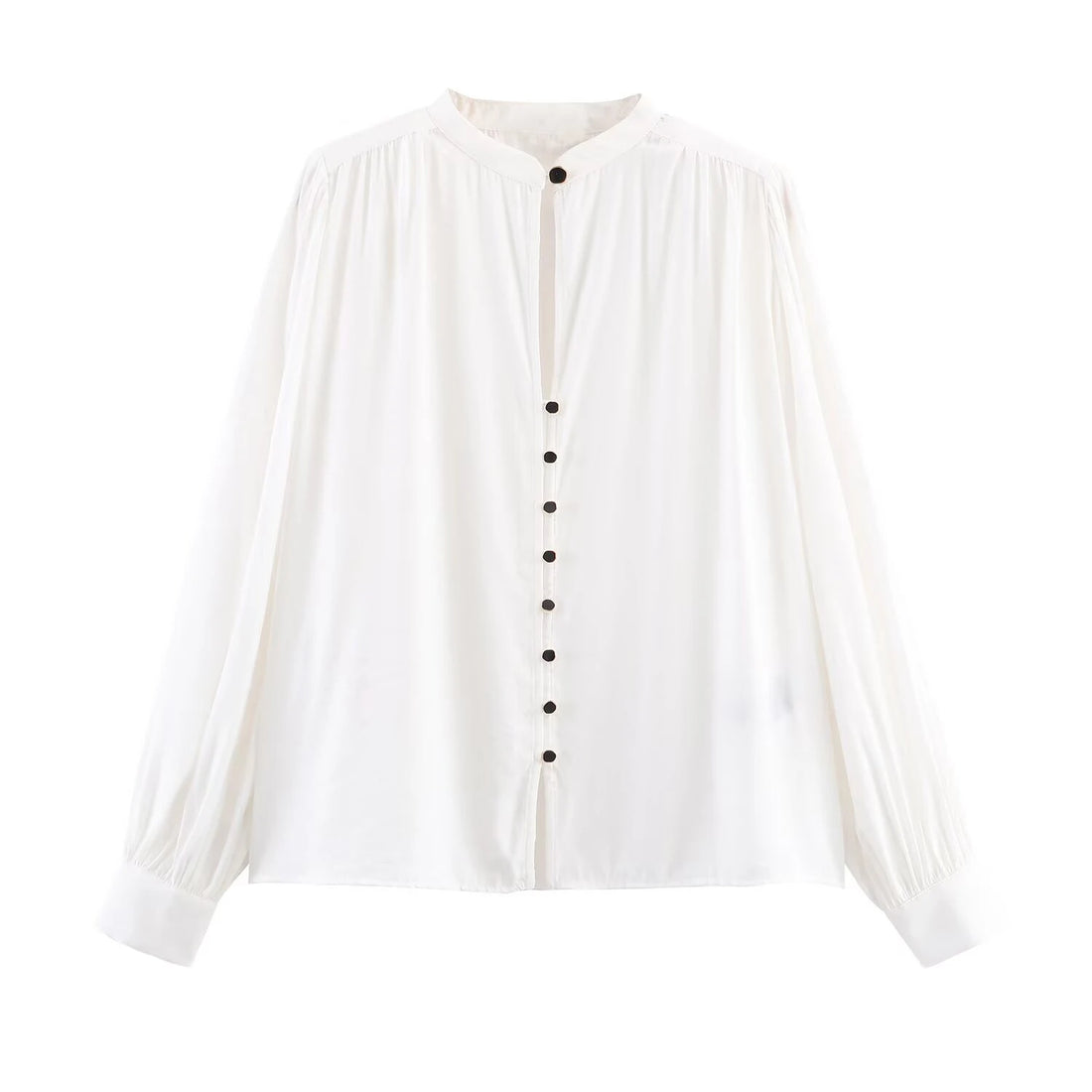 Women's autumn European and American style fashionable temperament shoulder pad long sleeved lapel casual shirt