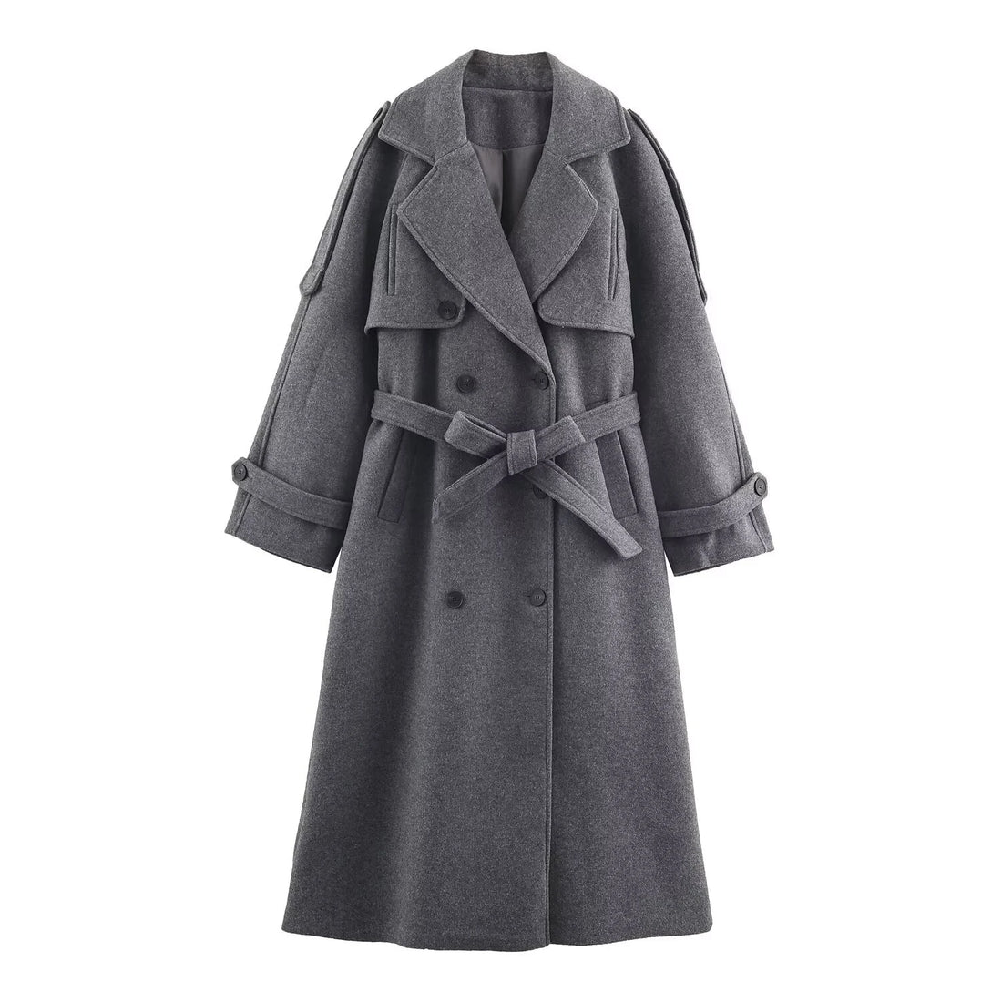 Women's clothing 2025 winter new casual loose long sleeved coat with waistband loop and double breasted coat