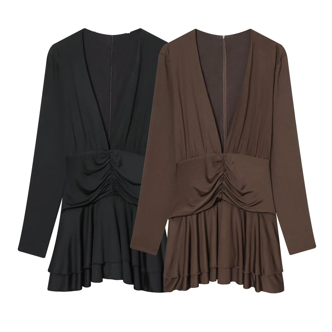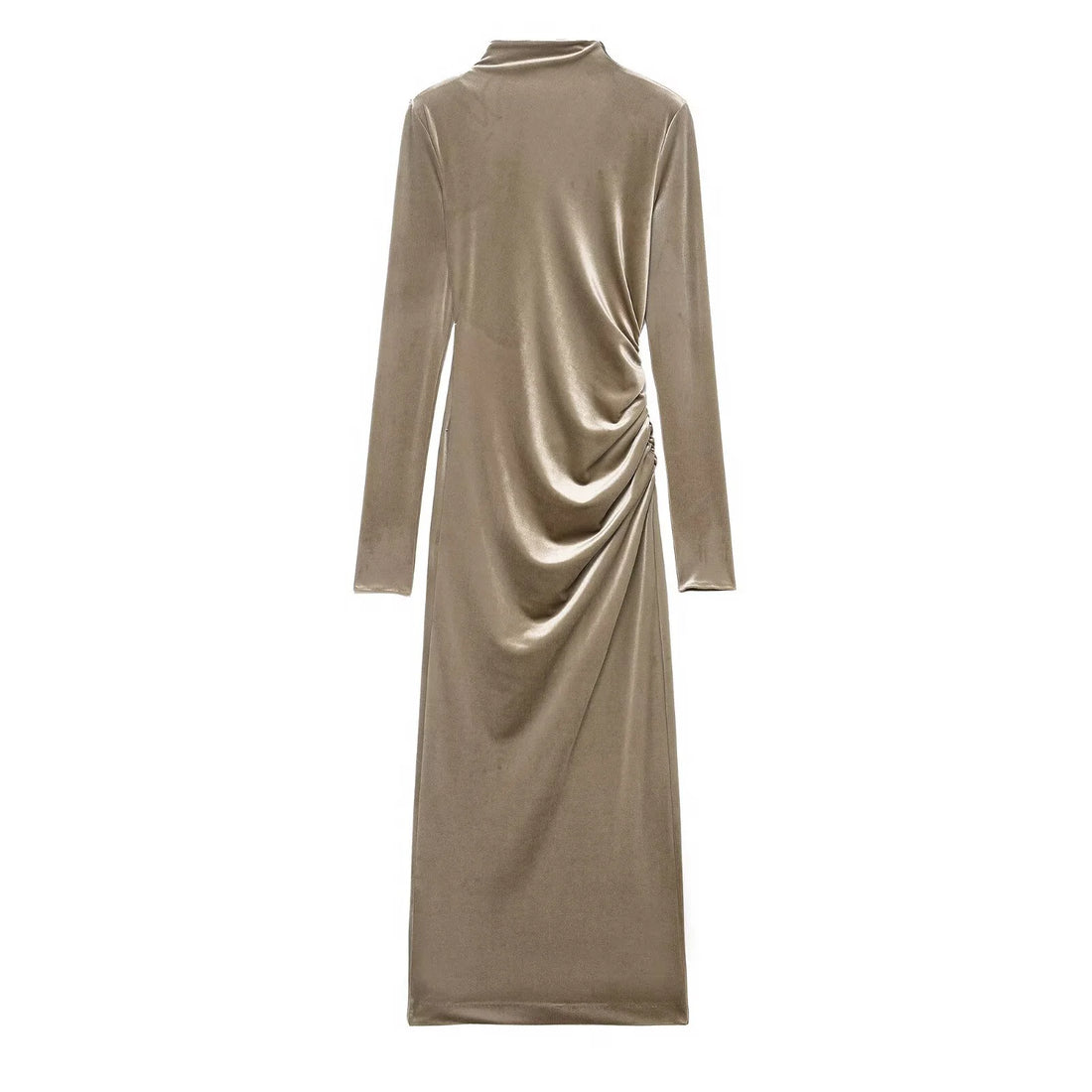 European and American style 2025 winter new women's clothing temperament slim fit waist pleated jumpsuit style dress