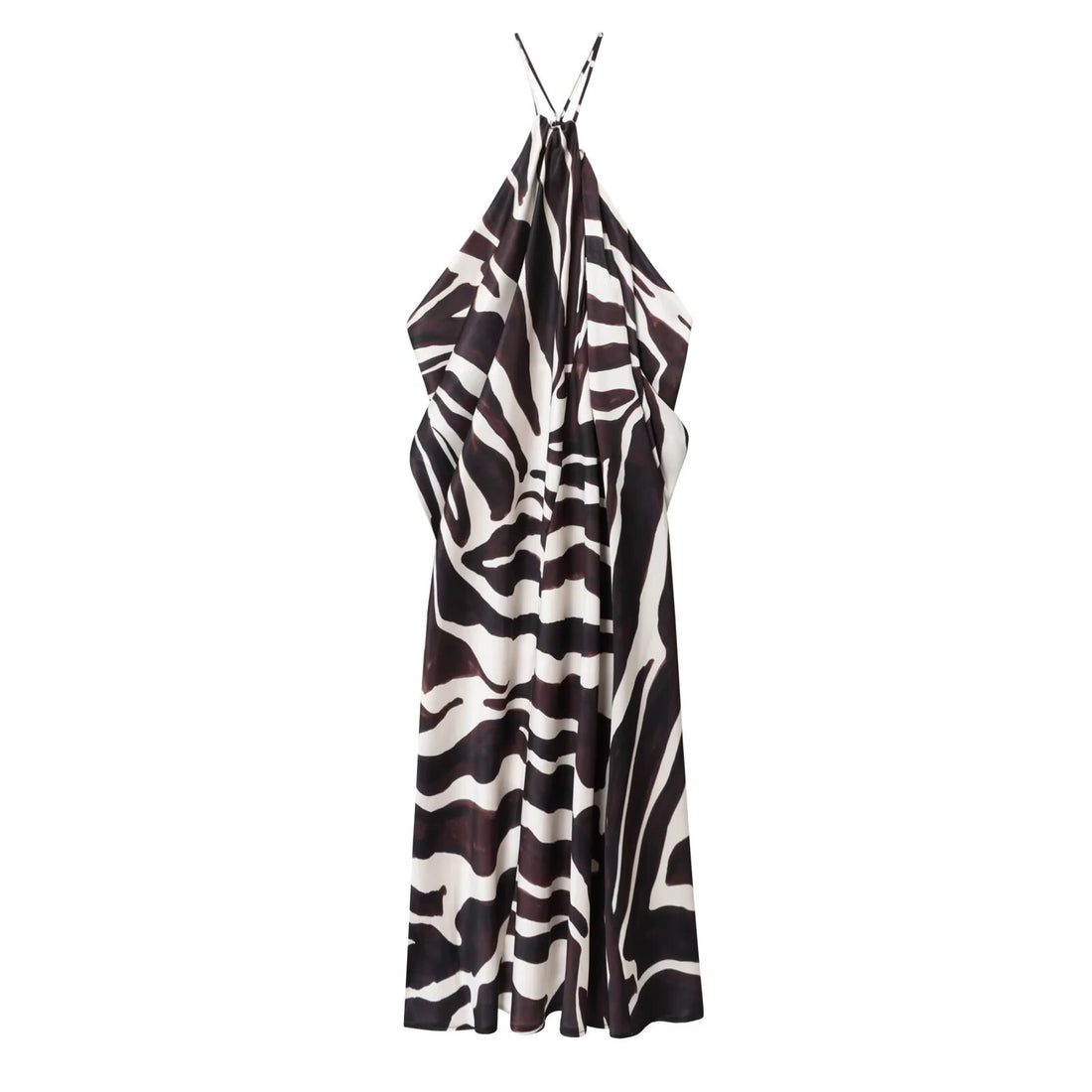 European and American 2025 autumn new women's clothing style simple sleeveless slim fit animal print dress
