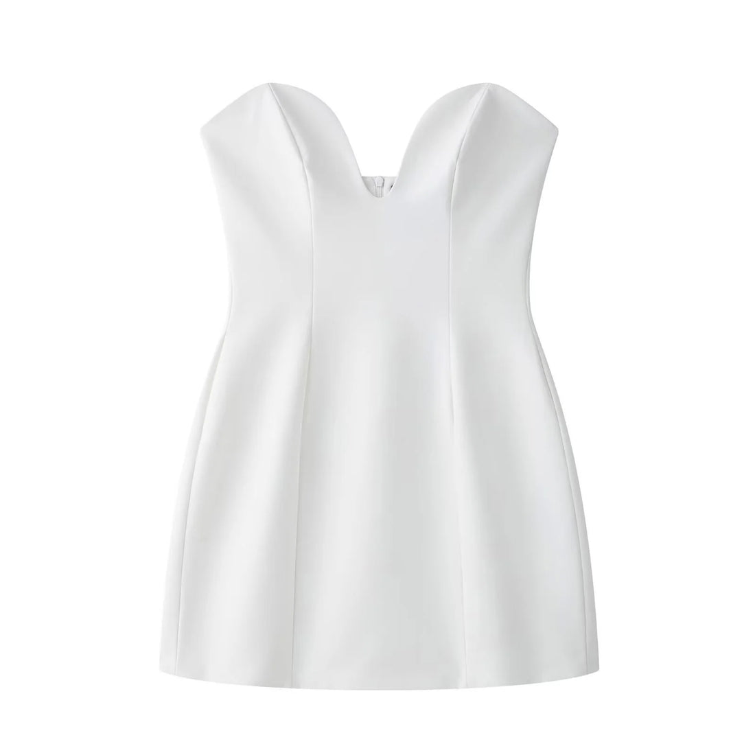 European And American Style 2025 Spring New Women's Clothing Design With Off Shoulder Heart-shaped Low Neck Short Dress
