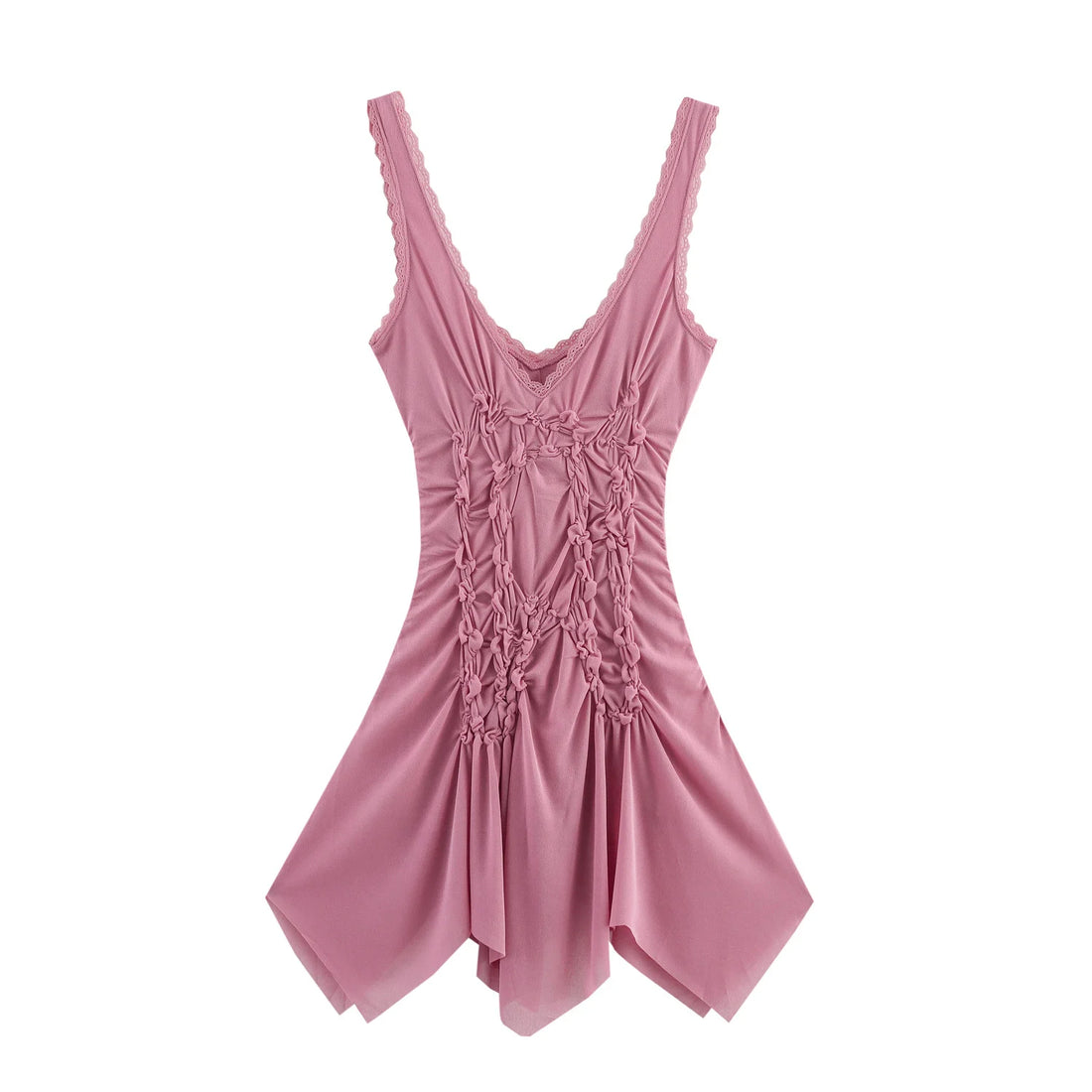 Summer New Women's Clothing Sweet And Fashionable Waist Cinched Lace Asymmetrical Pleated Suspender Dress