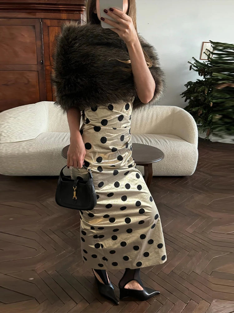 Women's Evening Dresses Polka Dot Strapless Pleat Long Dress Early Spring Female Sleeveless Backless Sheath Partywear New Robes