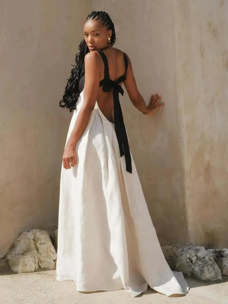 Sexy Panelled Maxi Dress Women Sling Strapless Sleeveless Backless Lace Up Pleat Long Dresses New Fashion Floor-length Vestidos