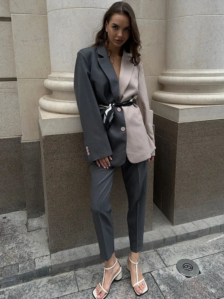 Patchwork Suit Jacket Pants 2 Pcs Suits Women Elegant Lapel Long Sleeve Single Breasted Blazer Pencil Trousers Autumn New Outfit