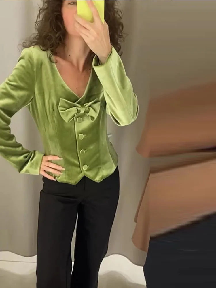 Women's 2 Pcs Suits Velver Bow Slim Bomber Jacket Sequined Long Skirt Sets New Female V-neck Button Coats With High Waist Skirts