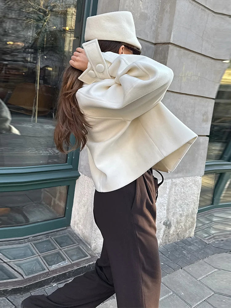 Short Woolen Jacket With Shoulder Sleeves Women Elegant Turn-down Collar Long Sleeve Coats New Fashion Autumn Winter Ladies Tops