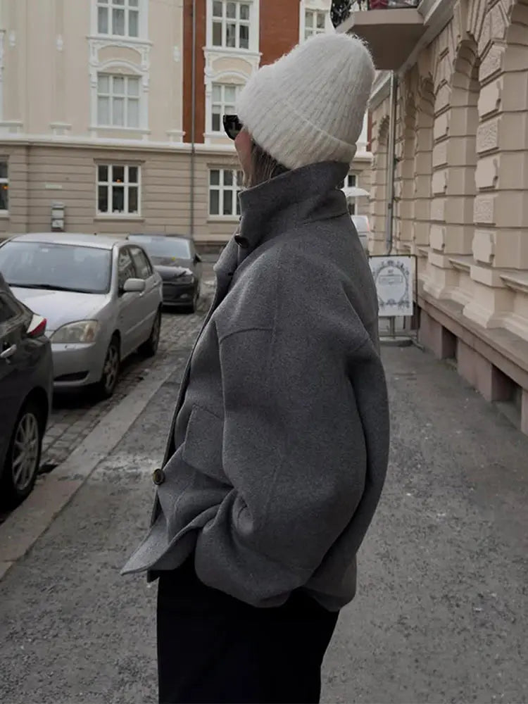 Vintage Solid Loose Women's Short Jackets Half Turtleneck Long Sleeve Button Pockets Coats New Fashion Autumn Winter Ladies Tops
