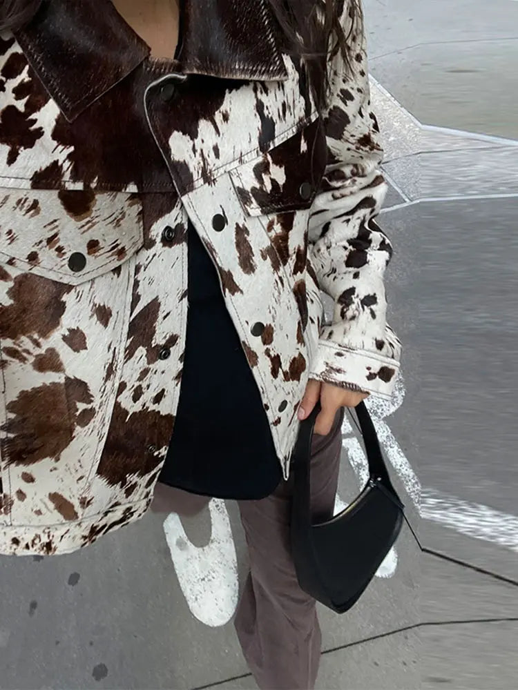 Street Printed Loose Women's Jacket Turn-down Collar Long Sleeve Single Breasted Pockets Coats New Fashion Early Autumn Lady Top