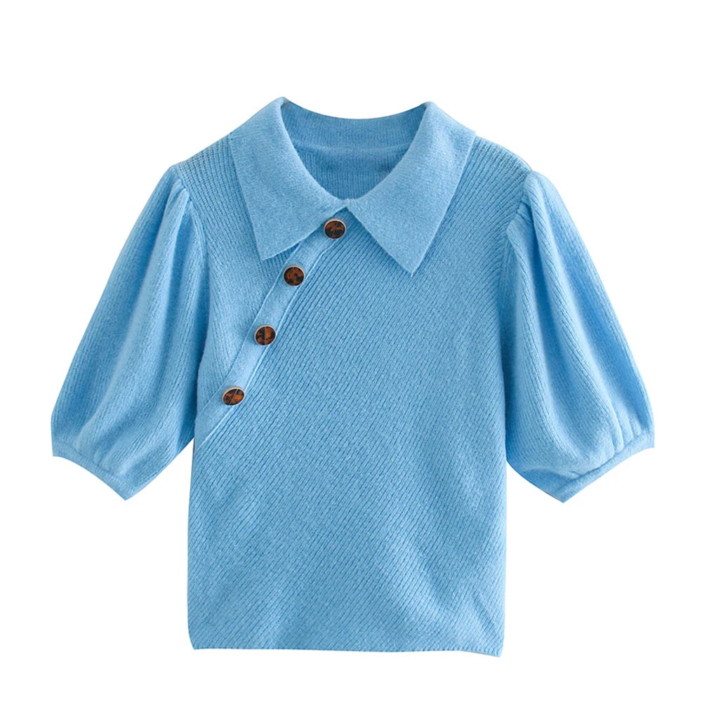 European and American style winter French fashion temperament blue collar base shirt button up knit top