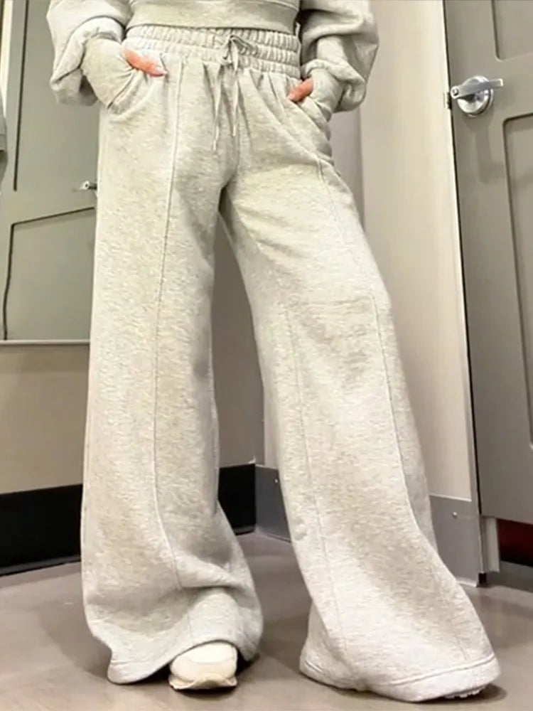 Round Neck Hoodies Pants Suits Women Casual Lantern Long Sleeve Crop Tops Lace Up Wide Leg Trousers Fashion Office Lady Outfits
