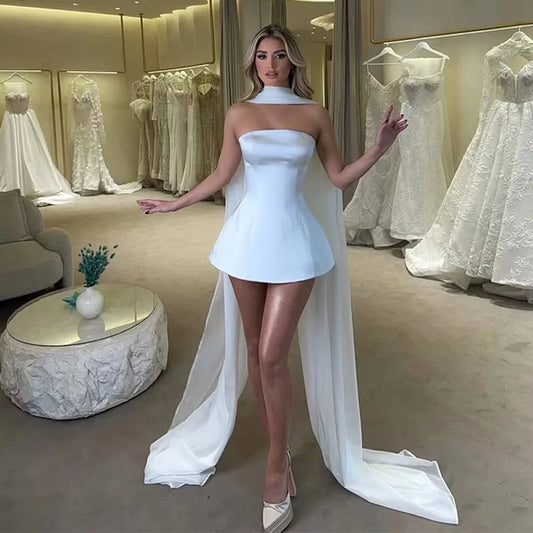 New Modern Short Wedding Dresses 2026 With Warp Strapless Satin Lace Up Bridal Party Gowns Dress Vestidos De Noiva