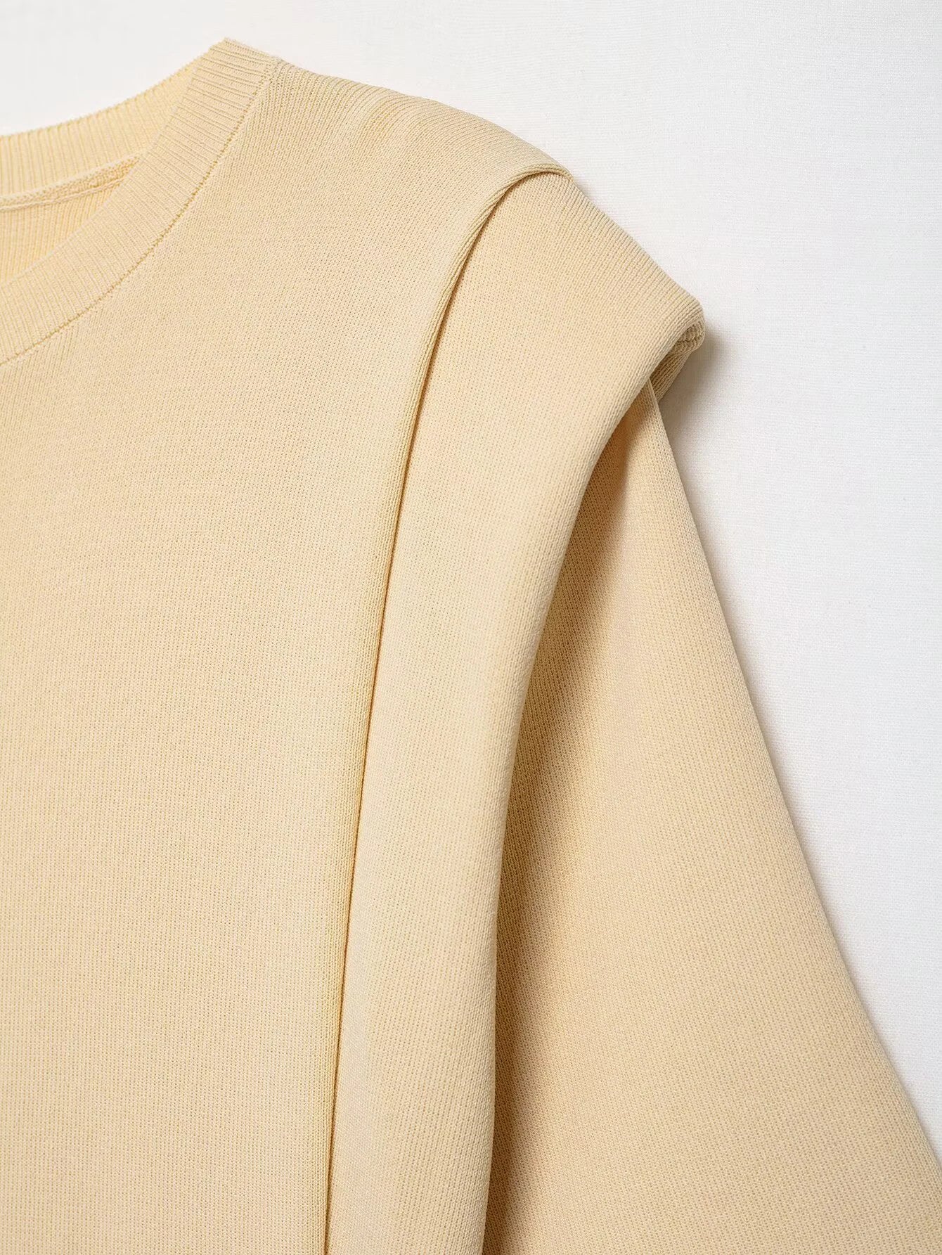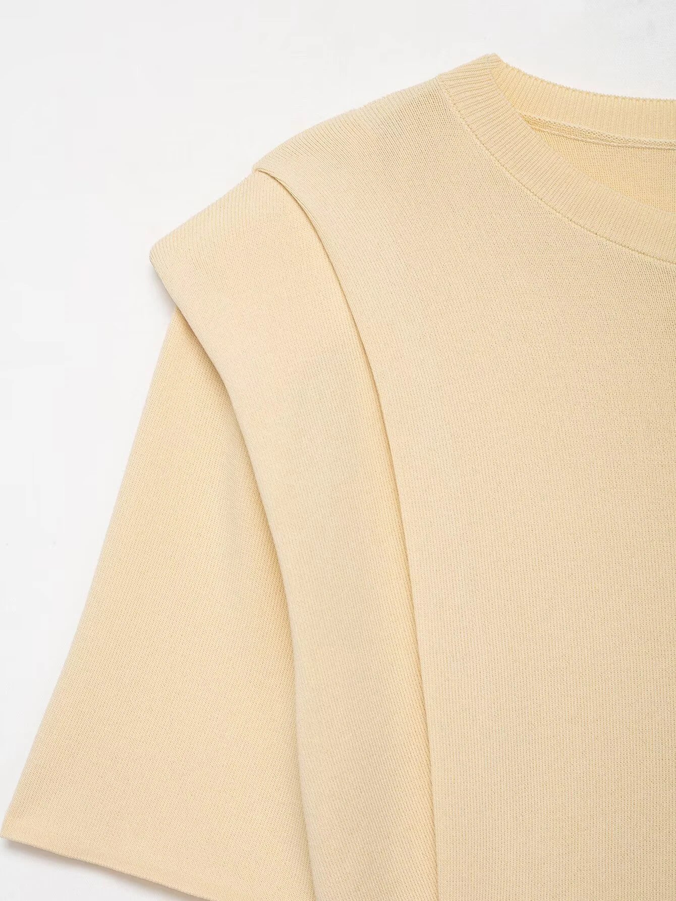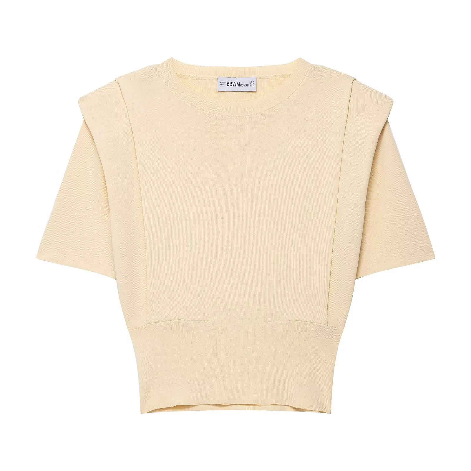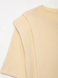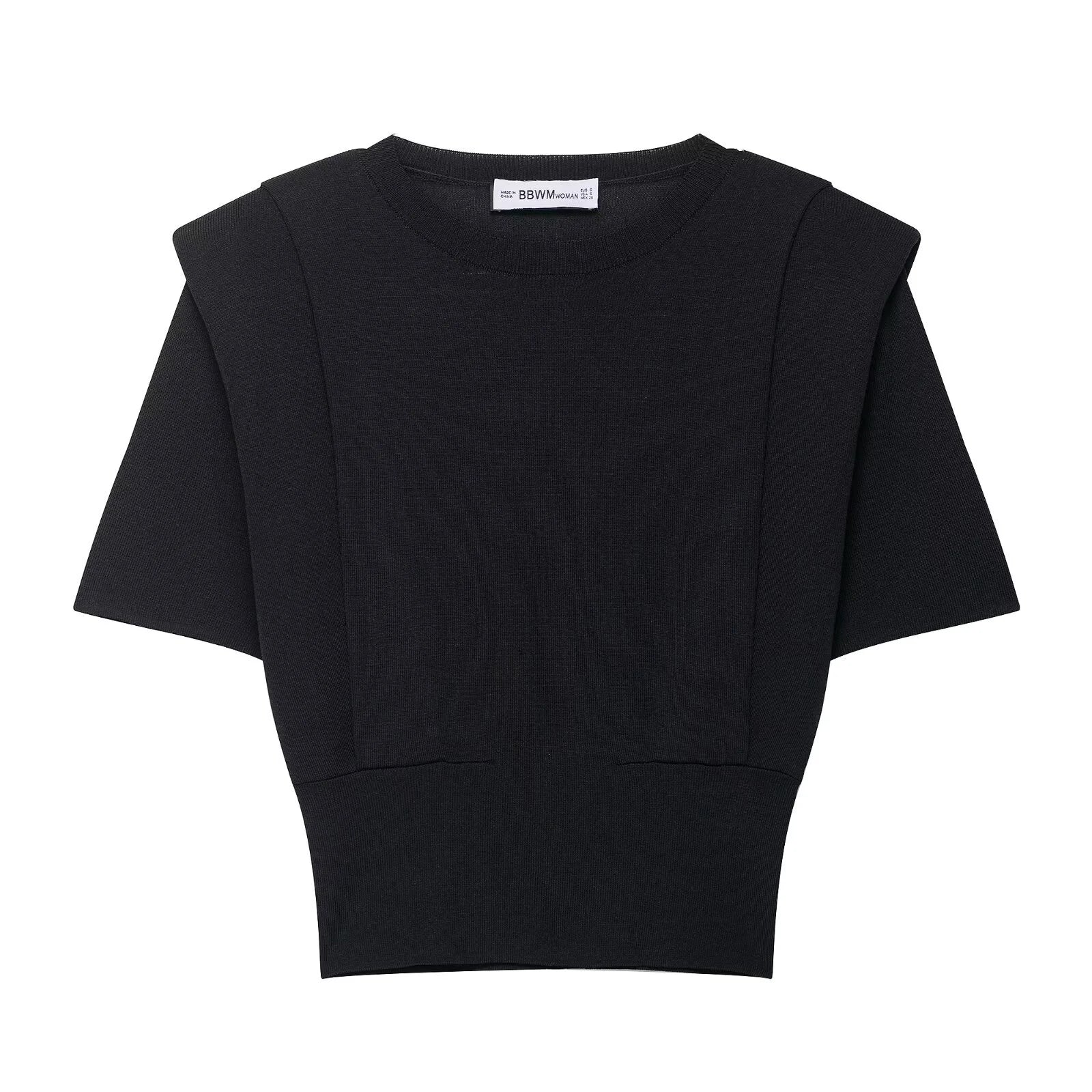 2025 Autumn New Product Women's Clothing Style Versatile Shoulder Pad Round Neck Short Sleeve Knitted Top
