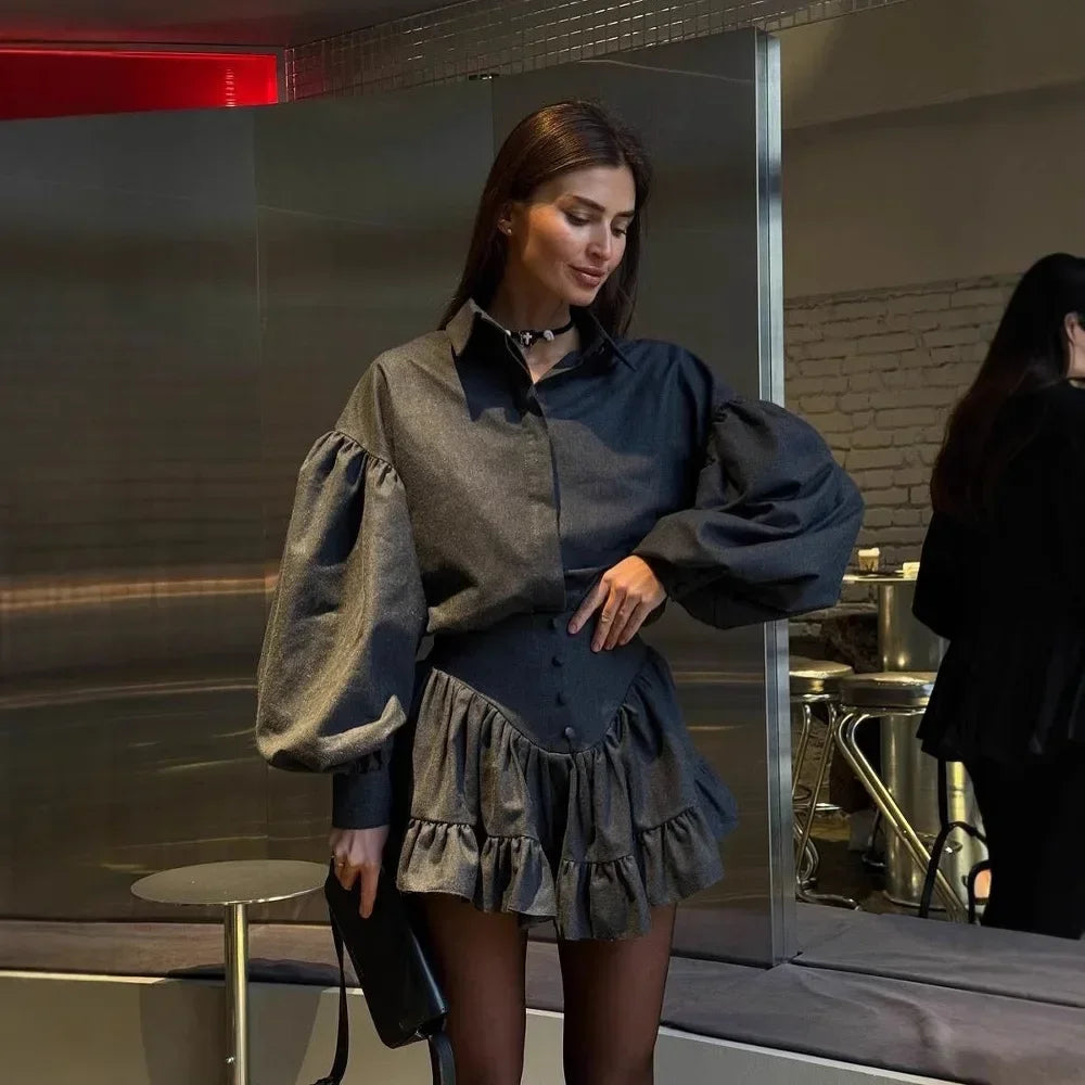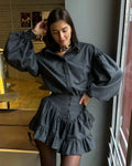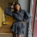 2025 New Elegantsuit Women's Clothing Set High-End Feel Spring Plaid Design Sensibility Ruffle Edge Mini Dress 2-Piece Wholesale