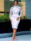 Aso Ebi Short Wedding Dress 2026 High Neck Lace Long Illusion Sleeves Sheath Bride Party Gowns New Vestidos De Noiva
