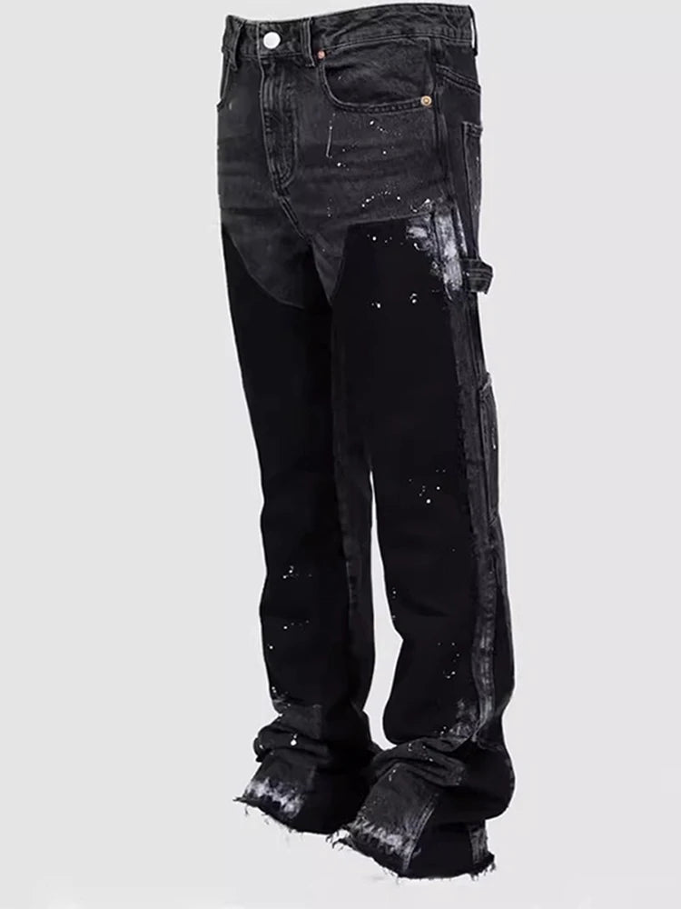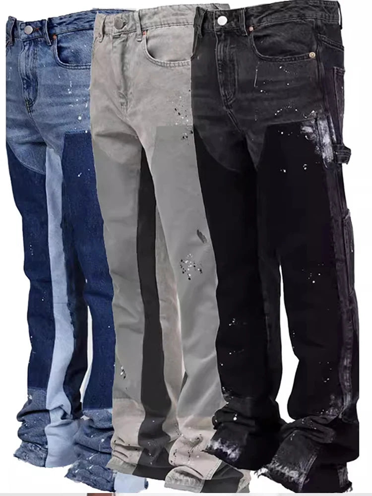 Baggy Jeans Man Cargo Patchwork Cascading Flare Trousers New Autumn Vintage High Waist Pocket Jeans Fashion All-match Male Pants