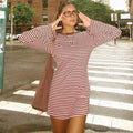 Casual Striped Loose T Shirt Dress Women Autumn Spring 2026 O Neck Long Sleeve A Line Mini Dresses Fashion Streetwear Robes