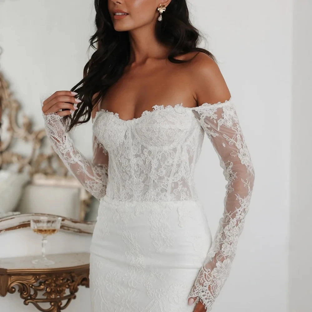 Classic A-line Short Wedding Dress 2026 Off the Shoulder Flowers Embroidery Lace Bride Party Dress Bridal Gown Vestidos De Noiva