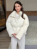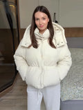 Detachable Hooded Padded Jacket Women Elegant Stand Collar Long Sleeve Loose Autumn Winter Coat Jackets Chic New Lady Outerwears