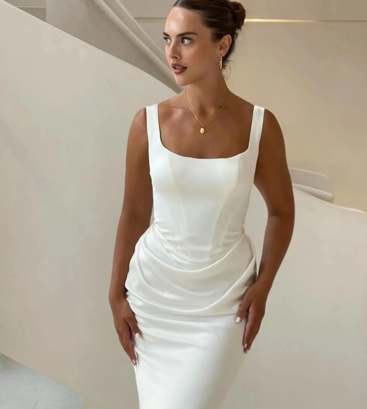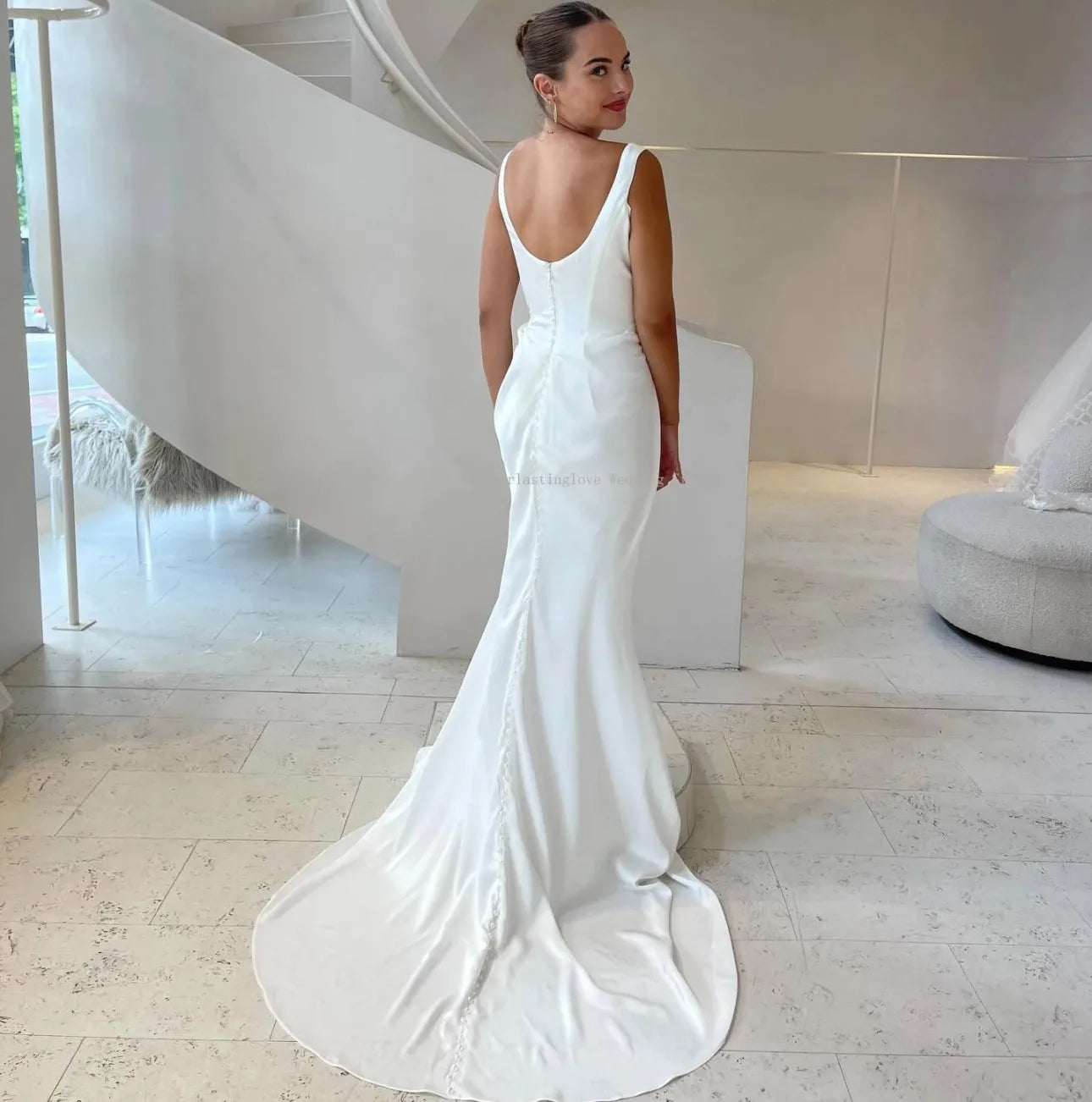 Elegant Mermaid Wedding Dress 2026 Scoop Neck Wide Straps Pleated Satin Sweep Train Bridal Gown Customizable Vestido De Noiva