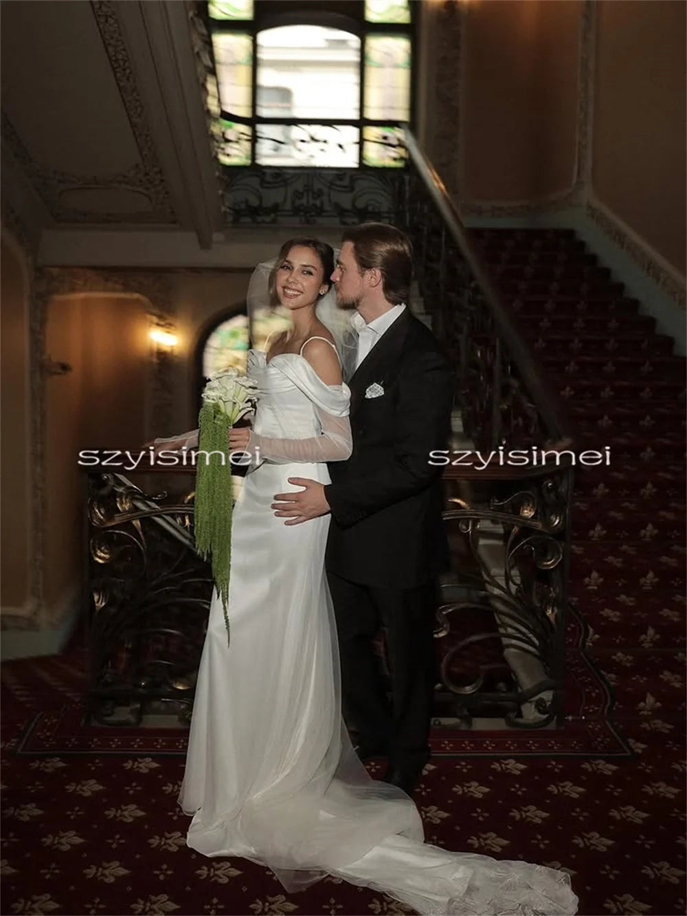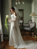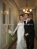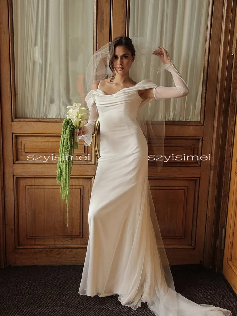 Elegant Mermaid Wedding Dress Sheath 3/4 Sleeves White Bridal Gowns Floor Length Evening Gown vestido de noiva