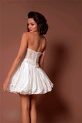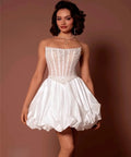Elegant Short Wedding Dress Strapless Beads Pearls Taffeta Mini Princess Bridal Party Gowns Beach Robe De Mariage