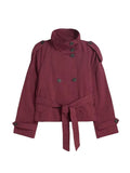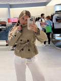 Elegant Solid Slim Women Jacket Stand Collar Long Sleeve Double Breasted Lace Up Patchwork Coats New Early Autumn Lady Outerwear