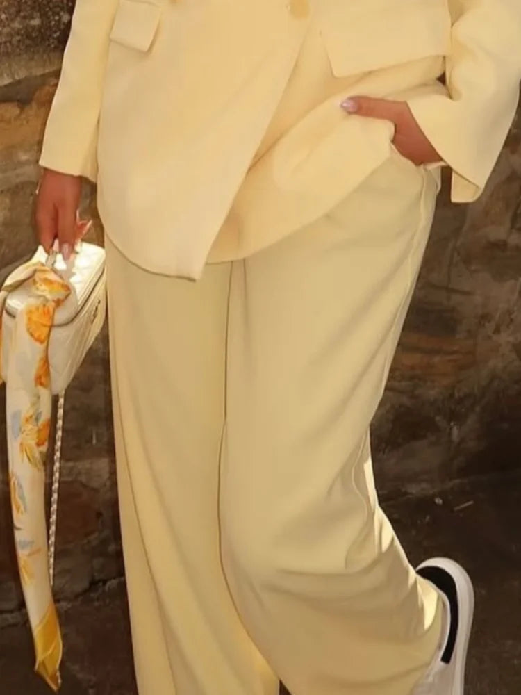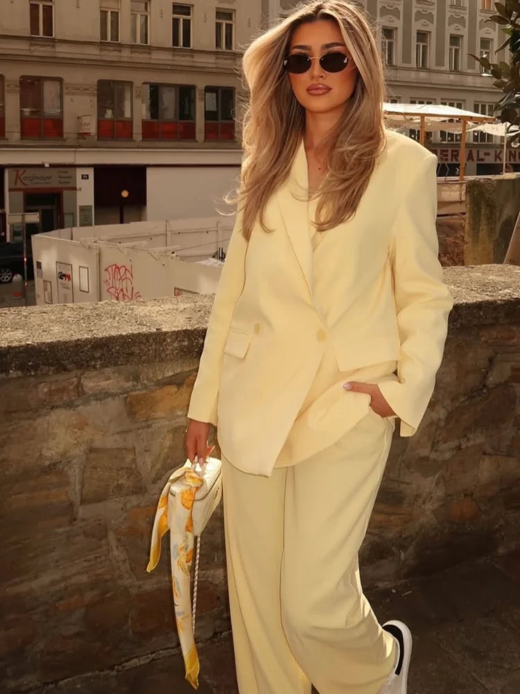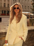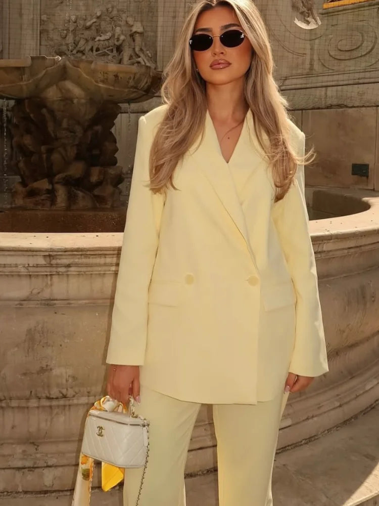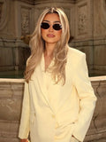 Elegant Solid Slim Women's 2 Pcs Suits Lapel Shoulder Pad Full Sleeves Button Blazers High Waist Pants Chic Office Lady Outfits