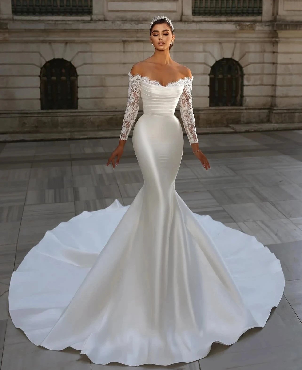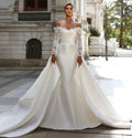 Elegant Wedding Dresses 2026 Off Shoulder Lace Long Sleeves Satin Mermaid Bride Dress Bridal Gowns Vestido De Noiva