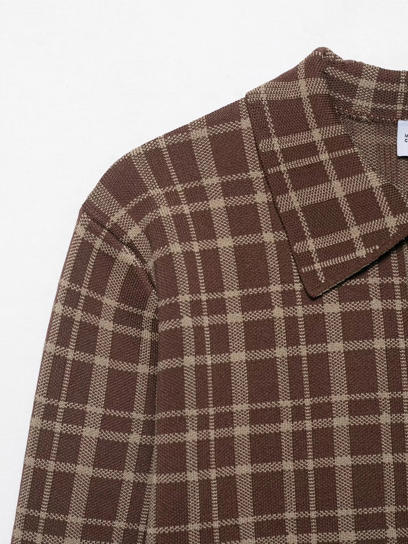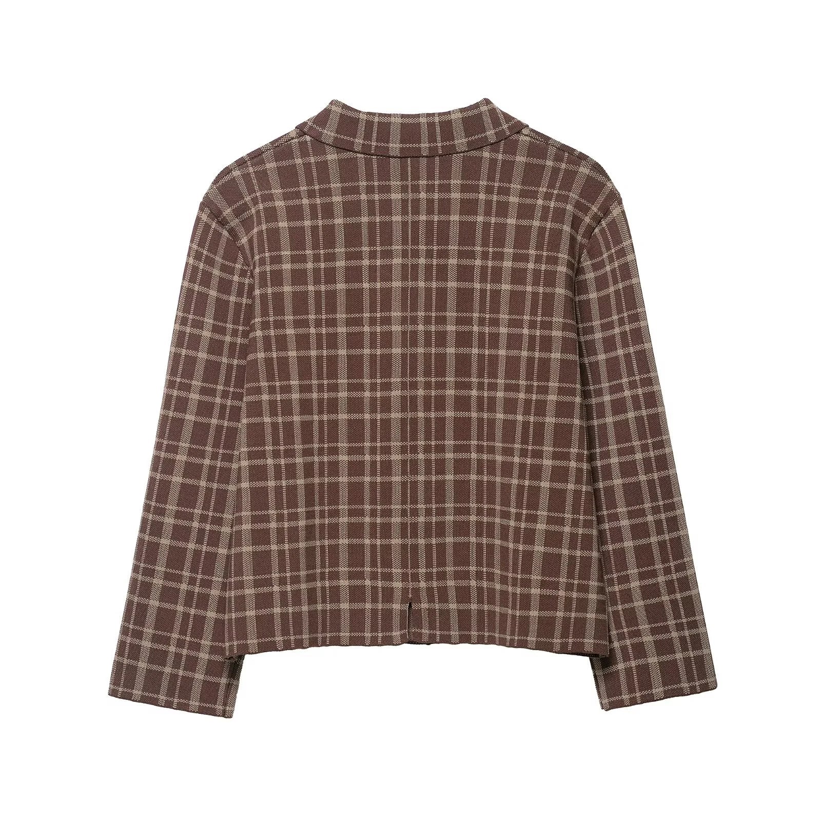 European and American style 2025 autumn new product women's versatile plaid collar seven quarter sleeve knitted jacket