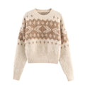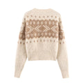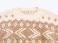 European and American style 2025 winter new women's casual round neck long sleeved wiping effect jacquard knitted sweater
