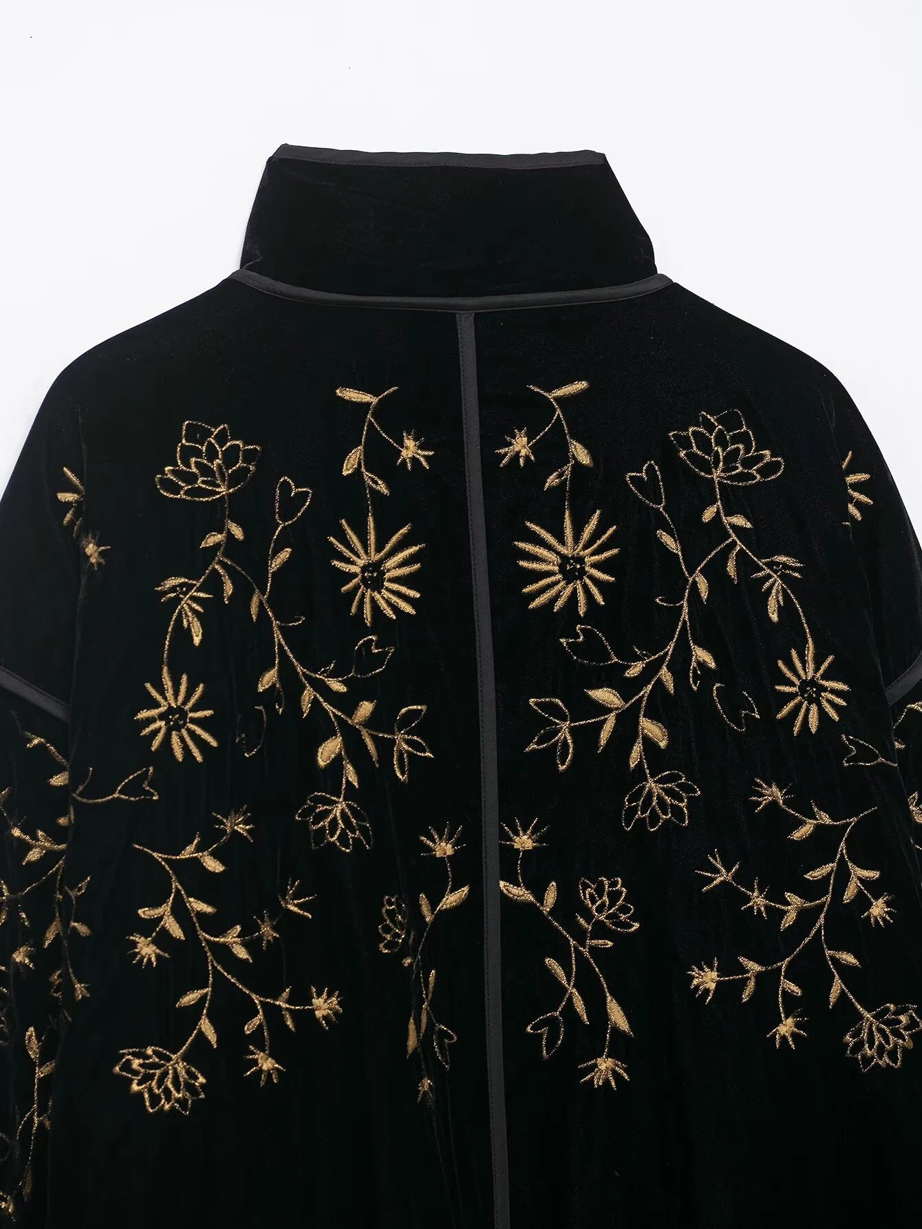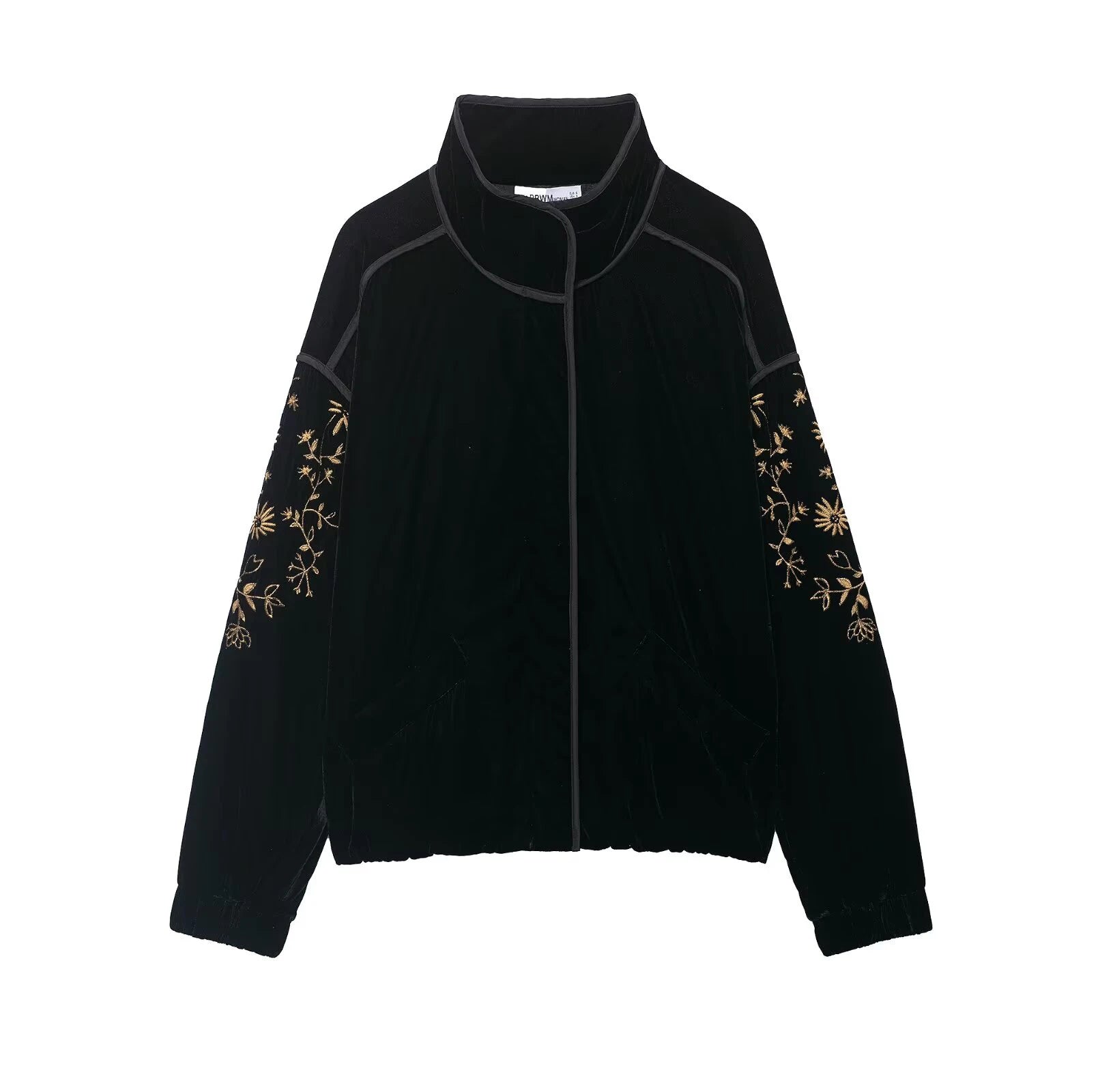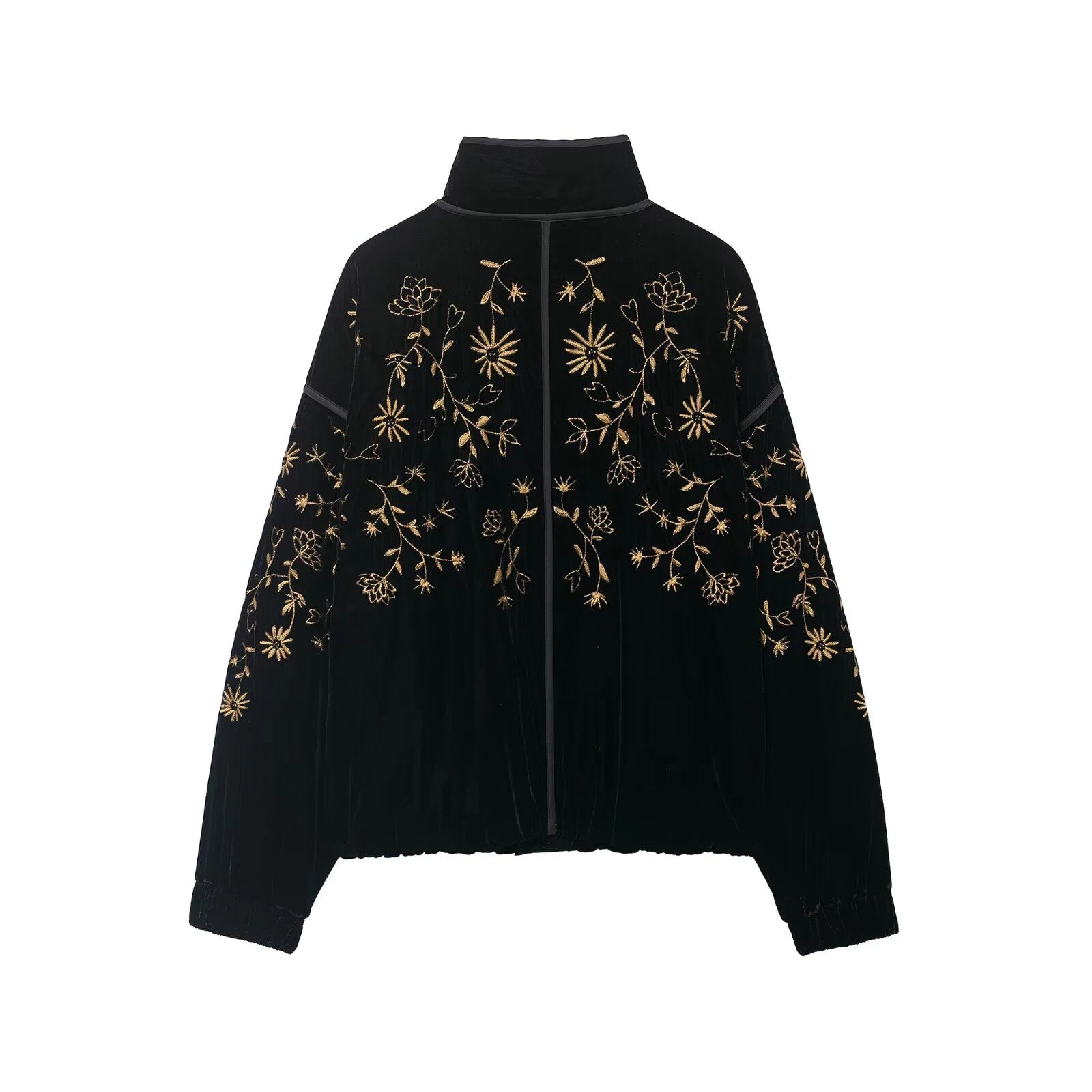 European and American style 2025 winter new women's casual stand collar embroidered velvet cotton jacket jacket jacket