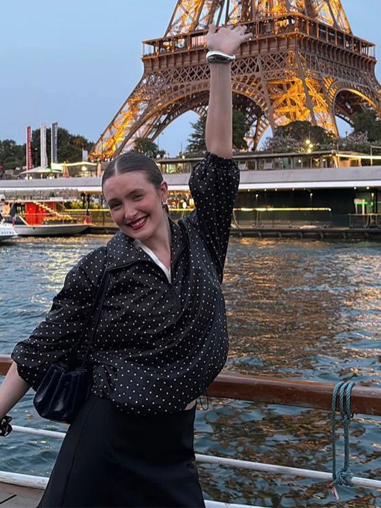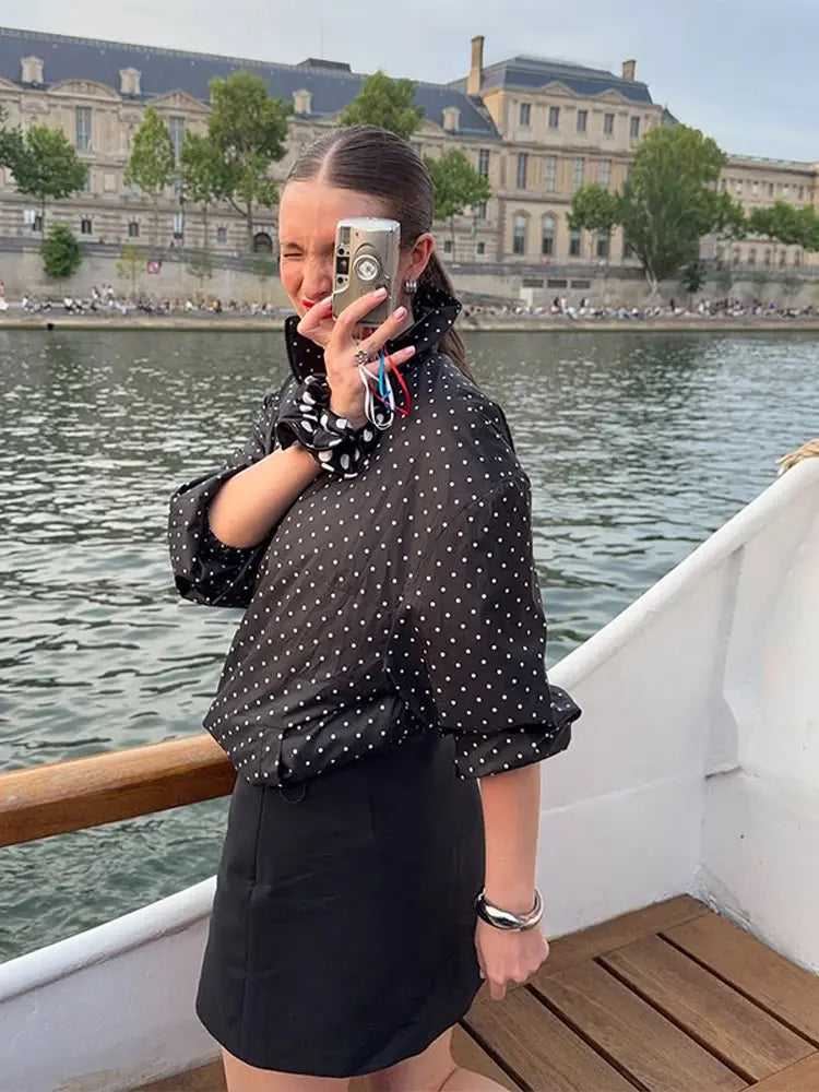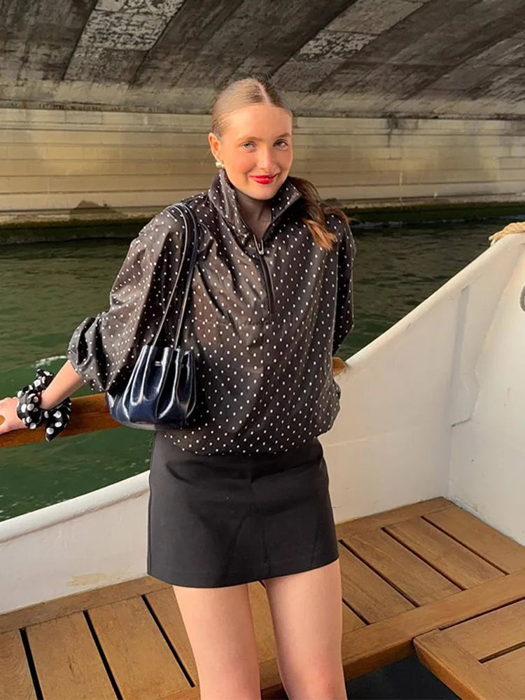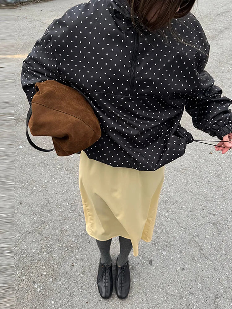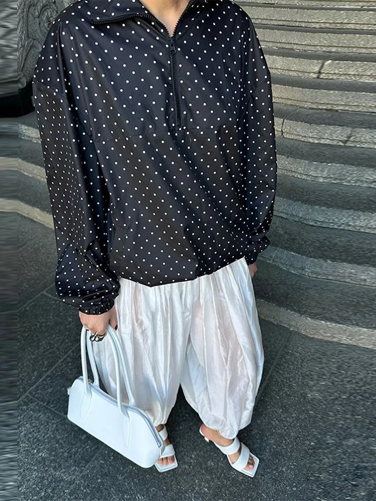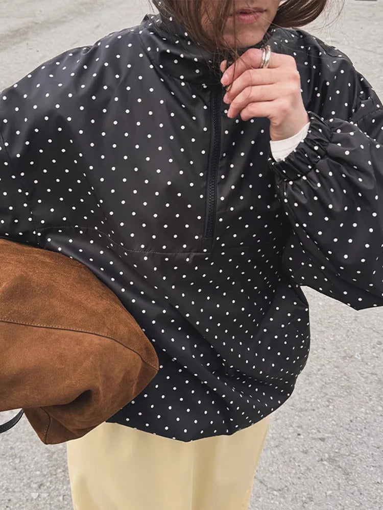 Fashion Polka Dot Loose Women's Pilot Jacket Half Zipper Lantern Long Sleeve New Designer Coat 2025 High Street Ladies Outerwear