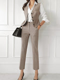 Fashion Spring Autumn Formal 3 Piece Outfit Suits Women Ladies Clothes Office Solid Tops Coat Blazer Suit And Vest And Pants Set