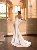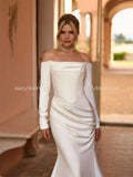 Fashion Strapless Satin Mermaid Wedding Dress 3/4 Sleeves Sweep Train Bridal Gowns vestido de novia Wedding Dresses Luxury