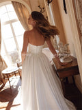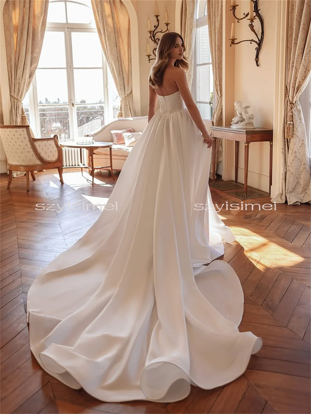 Fashion Strapless With Lace Appliques Wedding Dresses A Line Satin Bridal Gowns Sleeveless Evening Dress For Wedding Custom Made