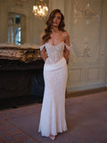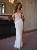 Gorgeous Pleated Lace Mermaid Wedding Dress Off Shoulder Floor-length Formal Bridal Gowns vestidos de novia