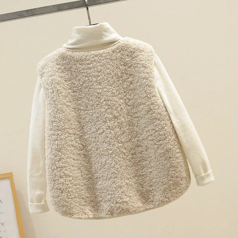 Lamb Wool Vest Women's Cropped 2025 Autumn/Winter New Style Korean Version Fur Integrated Horse Clip Granule Plush Shoulder Vest