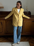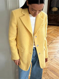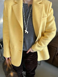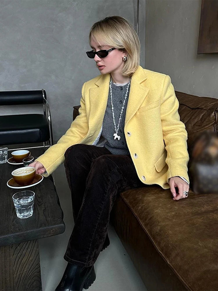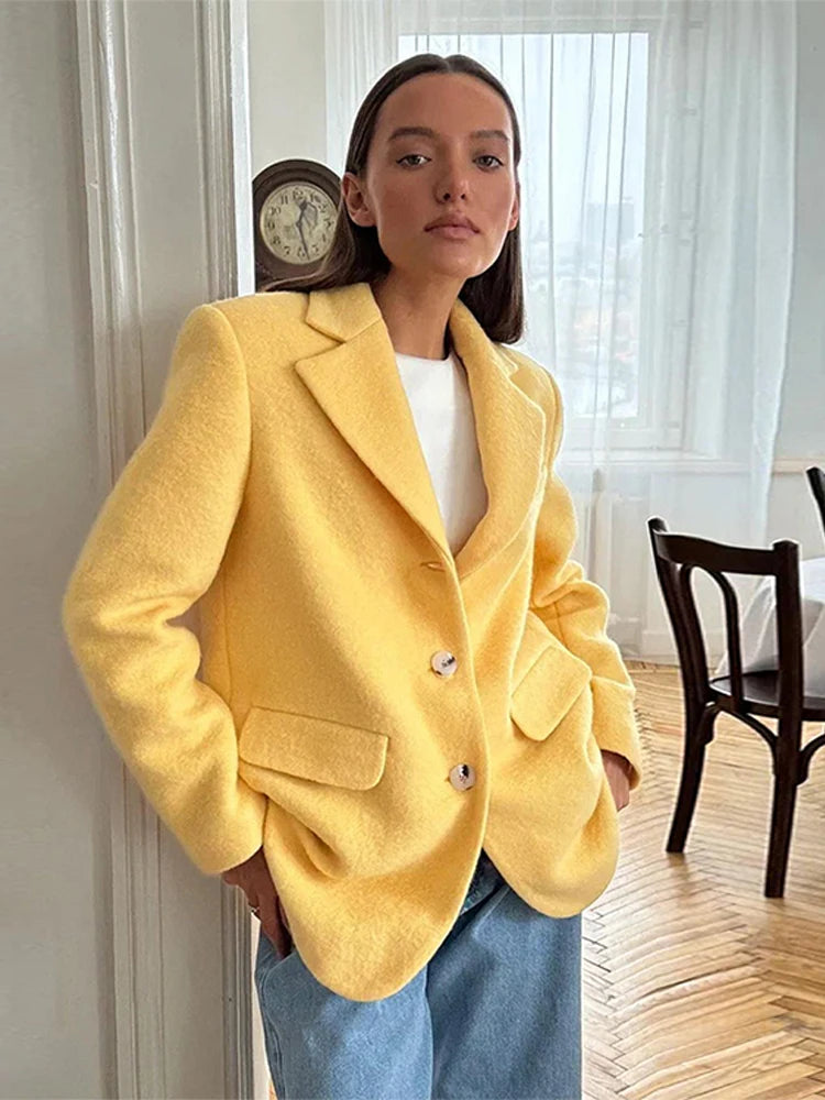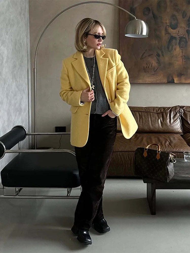 Lapel Woolen Shoulder Pad Suit Jacket Women Casual Turn-down Collar Long Sleeve Single Breasted Coats Chic Office Lady Outerwear