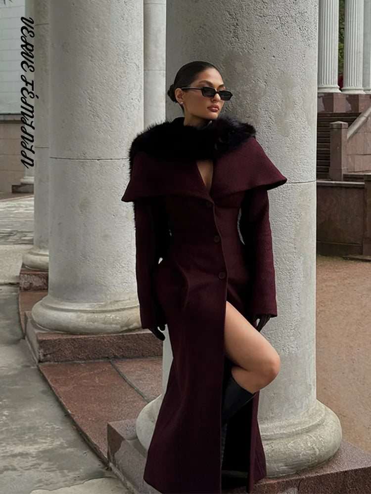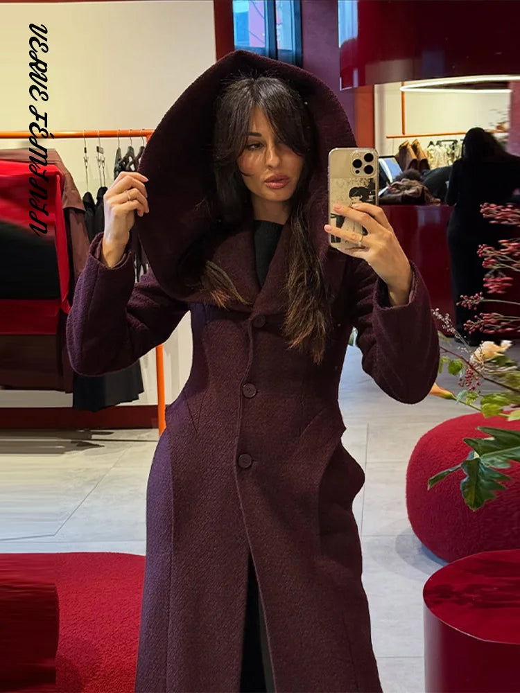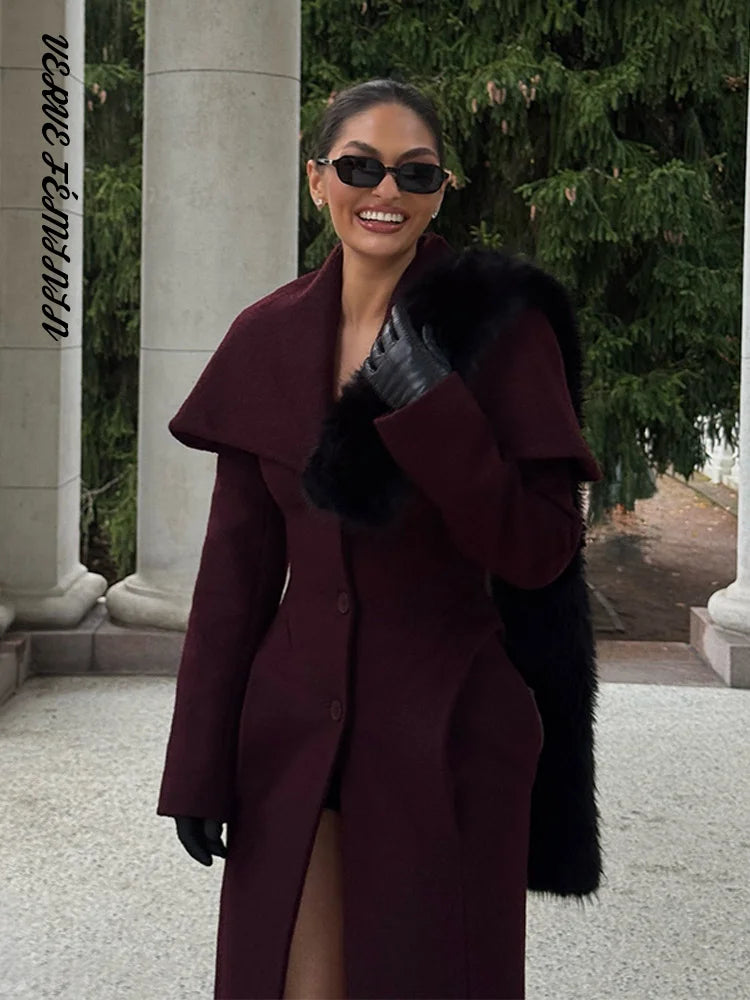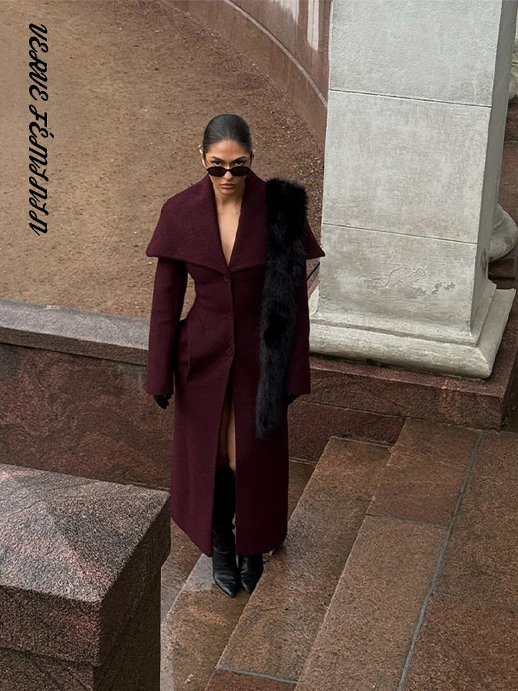 Large Shawl Solid Slim Woolen Overcoat Women Fashion Single Breasted Waist Cinching Hip Package Autumn Winter Coat New Outerwear