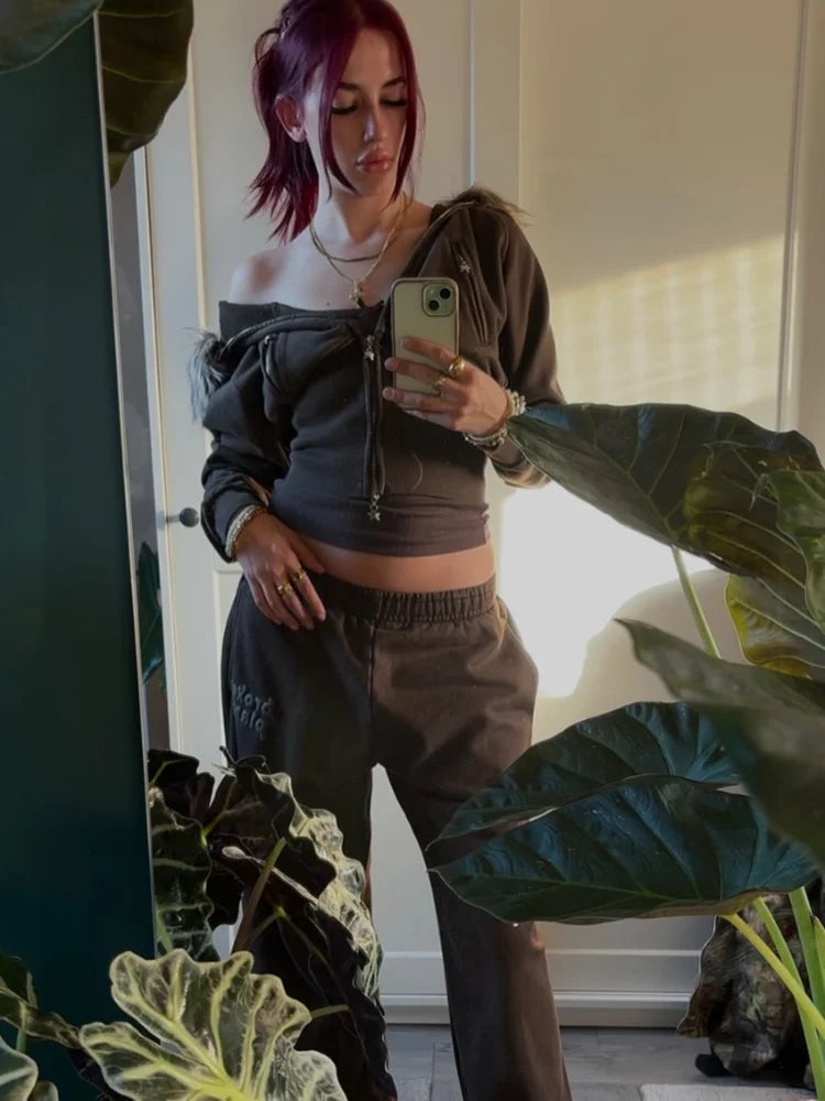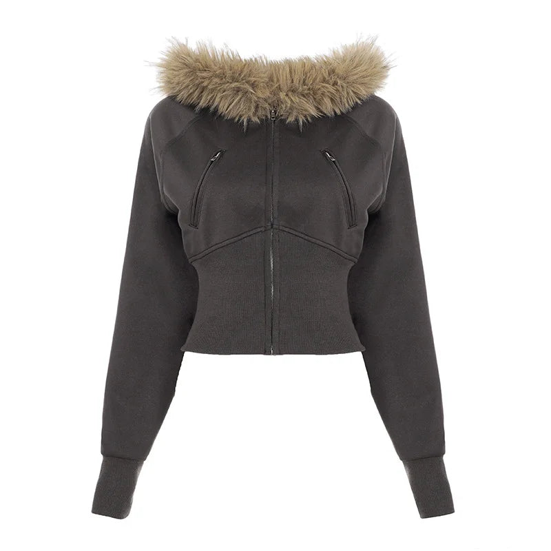 Leather Patchwork Slim Women Hoodies Batwing Long Sleeve Waist Cinching Zipper Pockets Crop Tops New Autumn Winter Ladies Jacket