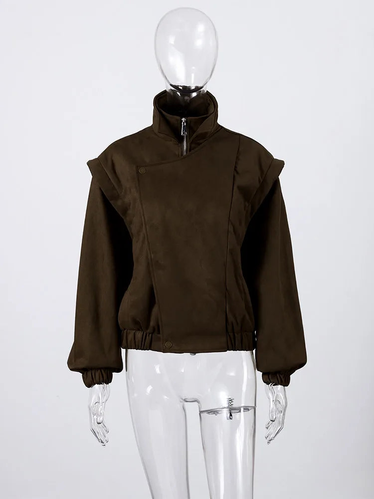 Locomotive Lapel Suede Jacket Women Lantern Long Sleeve Loose Fitting Patchwork Pilot Coats New Early Autumn Cool Girl Outerwear