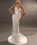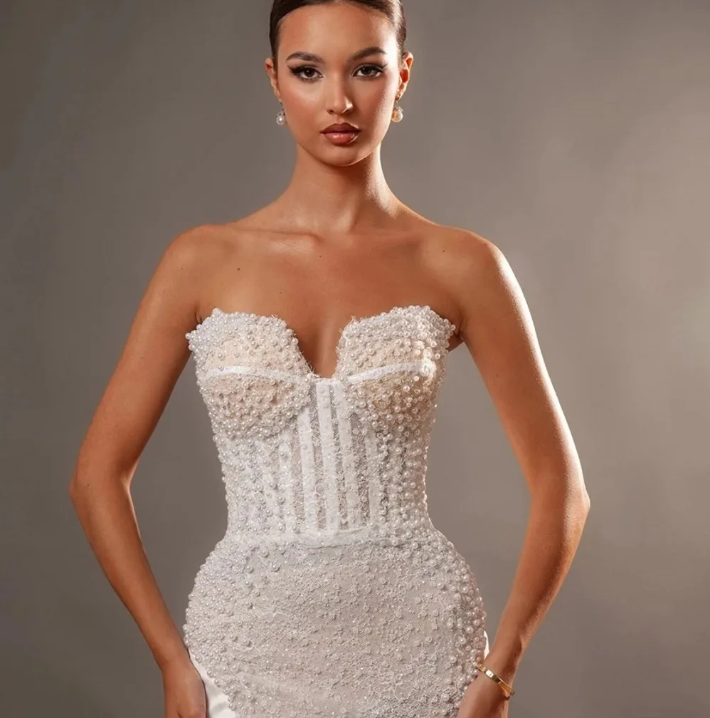 Luxury Lace Mermaid Wedding Dress Strapless Embroidery Pearls Beads Bridal Dresses Bride Party Gown vestidos de novia