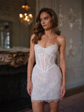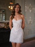 New Arrival Short Wedding Dress Scalloped Collar Floral Lace Pearls Corset Princess Bridal Party Gowns Vestidos De Noiva
