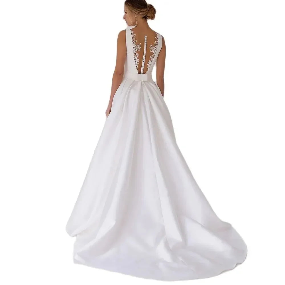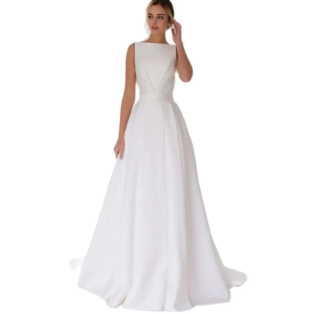 New Arrival Wedding Dress Boat Neck Sleeveless Lace Appliques Button Back A Line Bridal Formal Grown Vestidos De Novia